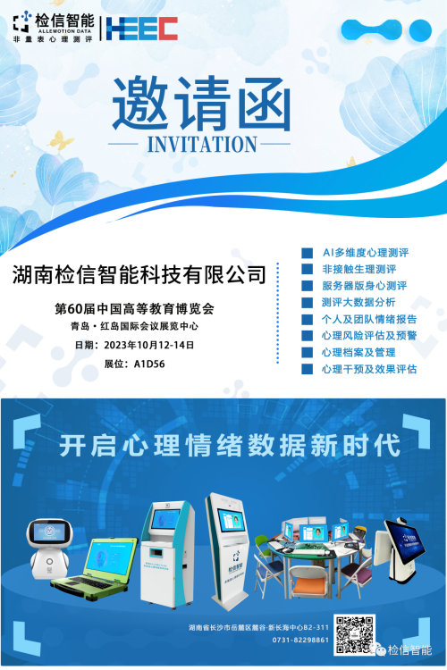 檢信智能圓滿完成第84屆中國教育裝備展示會的參展工作 第84屆中國教育裝備展示會于2024年10月25日至27日在昆明滇池國際會展中心舉辦,本次展示會全面展示了科技創新成果在學前教育、基礎教育、職業教育、特殊教育和高等教育領域的應用,包括實驗室設備、信息化設備及教學軟件、功能/學科教室設備,AI心理測評、音體美設備等,涵蓋教育領域各個應用場景。參展的國家級高新技術企業有255家,占參展企業總數的33%。 檢信ALLEMOTION 多維度心理情緒測評系統依托機器紅外視覺識別技術采集人臉視頻數據,結合心理計算大模型及深度學習神經網絡架構,預測篩查學生心理健康預警及建立學生心理健康檔案管理系統。通過本次展會與廣大客戶群體深入交流學習,獲得了很多用戶意見及認同,對我們檢信品牌AI心理情緒識別具有很大的價值與作用。 湖南檢信智能科技有限公司成立于2016年,是一家專注于語音情緒識別,人臉表情識別,面篩情緒識別,眼動情緒識別等核心自主知識產權技術開發的人工智能型企業,并結合湘雅醫學院心理專家團隊心理情緒分類模型,首創檢信 Allemotion OS心理情緒開發平臺, 應用開發有多維度AI心理測評系統、崗前安全評測系統和心理意圖分析系統等主導產品。 檢信智能聚焦于心理情緒技術的開發與應用,經過8年的企業創新發展歷程,累計申請國家發明專利17項,2019年獲得武器裝備質量管理體系認證,2021年獲得國防科大國科平臺優秀創新獎,2022年非接觸式無創傷心理情緒監測核心技術榮獲國家科技部發明創新創業成果二等獎,2023年榮獲國家高新技術企業。